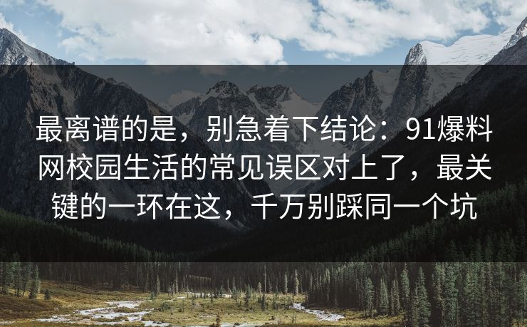 最离谱的是,别急着下结论:91爆料网校园生活的常见误区对上了,最关键...